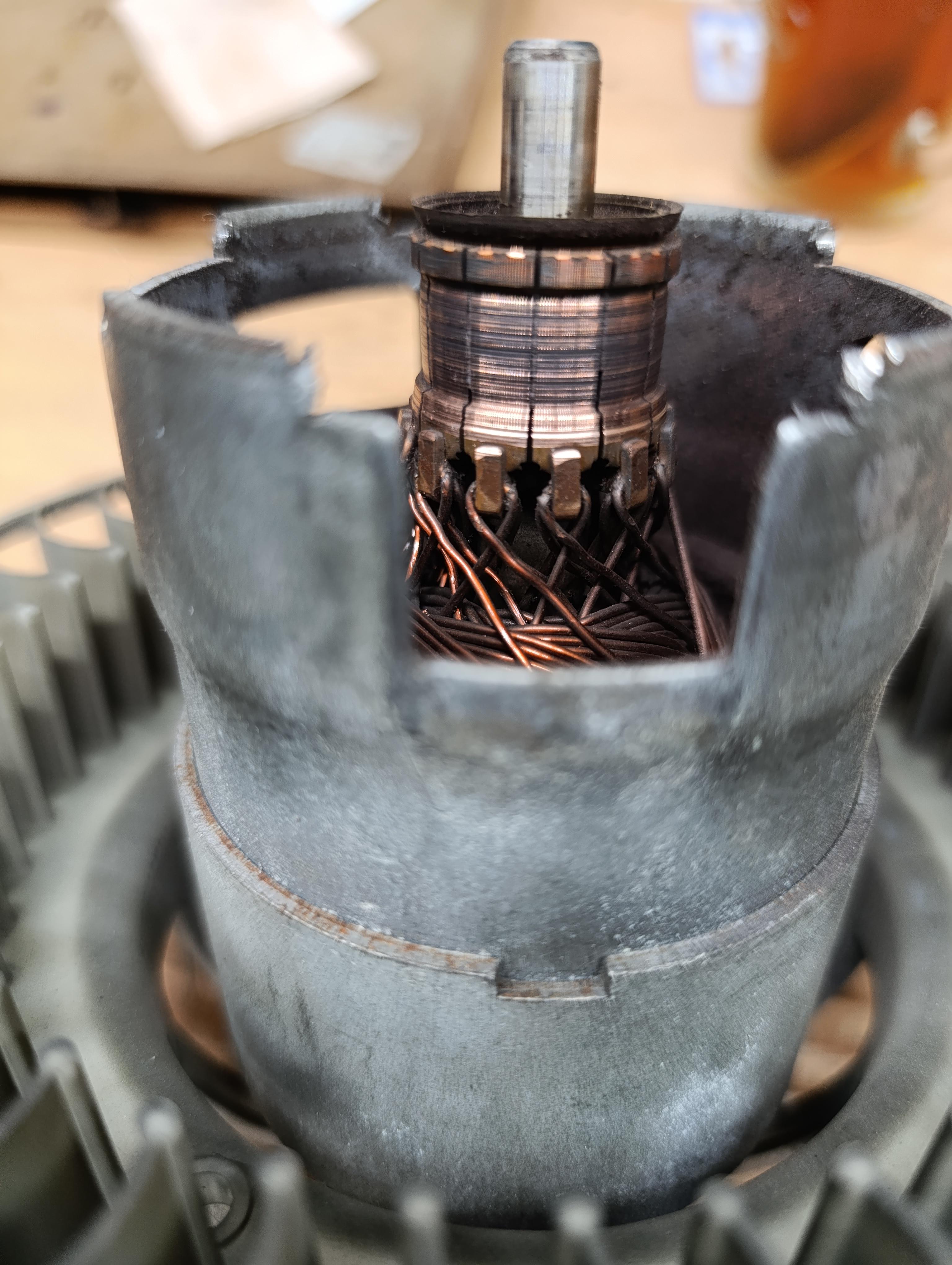Ремонт якоря вентилятора печки Bosch DPL 12V B2790 0130101138 автомобиля "Мерседес" Удаление старого неисправного коллектора. Установка нового коллектора. Фиксация эмальпровода в крючках коллектора. Проточка коллектора. Балансировка якоря. Установка и подгонка новых меднографитовых щеток. Сборка электродвигателя. Фиксация лопастей вентилятора.